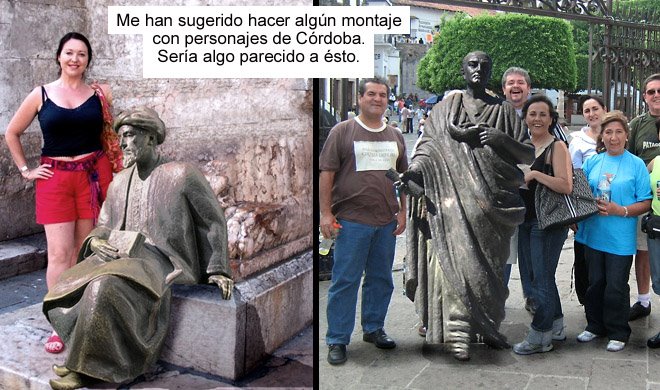 En otros lugares ya lo han hecho. ( ver fotos). ¿ Os imaginais poder sentaros junto a Averroes? o pasear por una callejuela y encontraros con Séneca... o a Julio Romero en la entrada de su museo ?. En unos cuantos años tendríamos decenas de esculturas por la zona turística. ( No cabe duda que sería un atractivo más para la ciudad ).Creo que sería un gasto pequeño para el Ayuntamiento, pero que tendría una gran aceptación y popularidad.